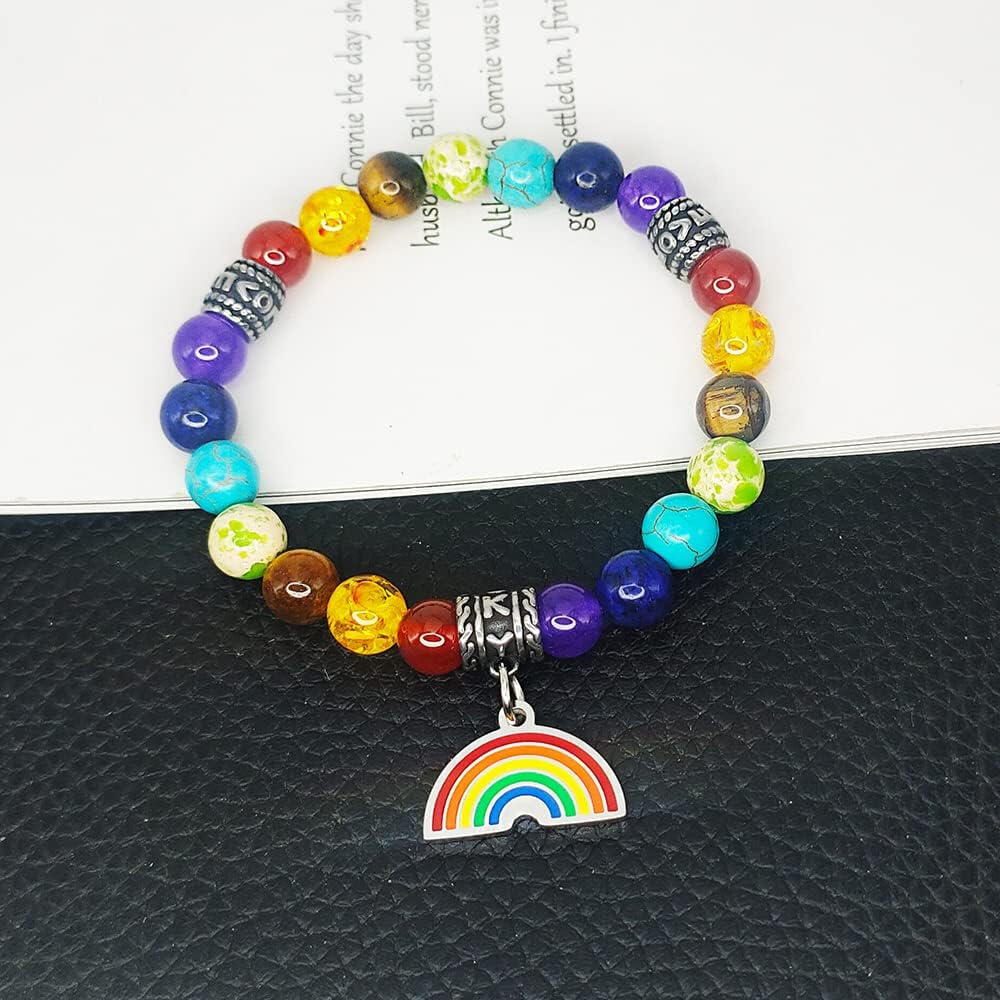 This beautiful Pride Necklace is made with precious stone beads, obsidian, and braided cord. It is lightweight and stylish. Showcase the hues of you with this necklace. Each precious stone carries the energy of the Pride colors with Obsidian honing protection, personal growth, and warding off negative energy!