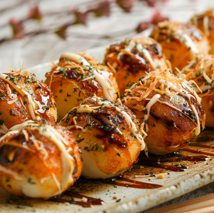 Fluffy and airy rolled omelette with a mild tangy sweetness Yokai and Akashi love! One version is made with pickled red ginger adding that lovely acidic vinegar taste. The other version is made with a mix of spinach and shiso leaf, offering a slight earthy bitterness and a light peppery taste from the shiso leaf, An irresistible flavor combination!