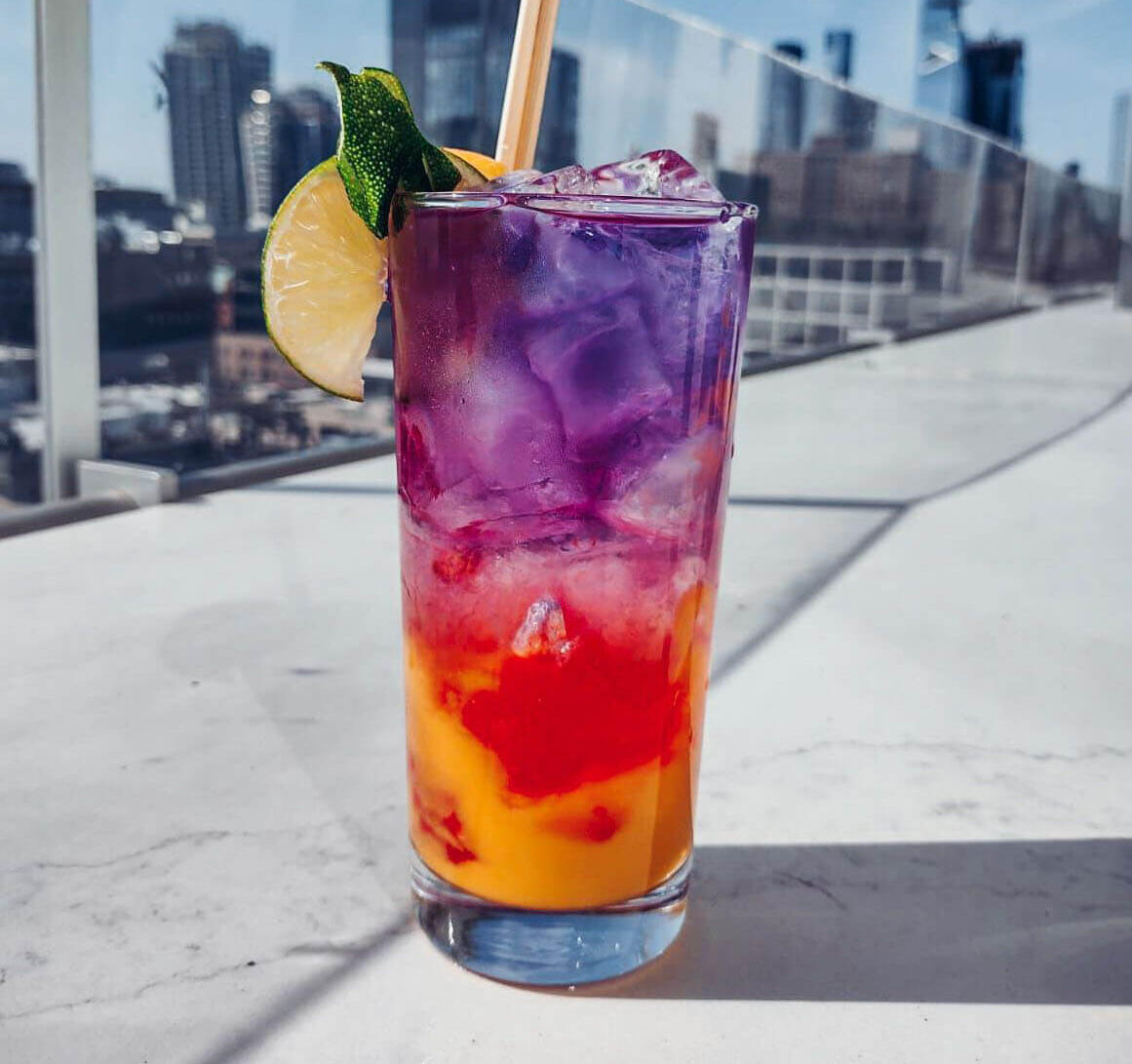 The next stripe on the flag is red, symbolizing life itself. The cocktail to represent this is a Summer Negroni. Not only does a Negroni feel like a timeless, classic drink, but it’s had a long life of its own, which is a good comparison to the life and longevity of the LGBTQ+ community.